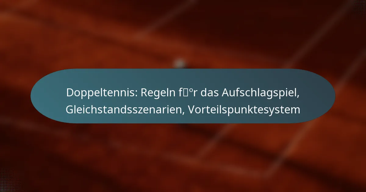 Doppelt-Tennis beinhaltet spezifische Regeln für das Aufschlagspiel, die entscheidend sind, um Ordnung und Strategie während der Matches aufrechtzuerhalten. Wenn der Punktestand bei 40-40 Gleichstand erreicht, müssen die Teams die Vorteil-Punkte navigieren, was bedeutet, dass sie zwei aufeinanderfolgende Punkte gewinnen müssen, um das Spiel zu gewinnen. Das Verständnis dieser Elemente ist entscheidend für effektives Spiel und Teamarbeit.